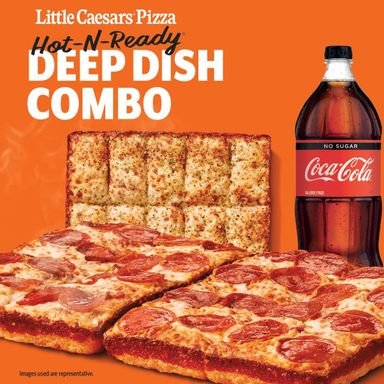 A Detroit-style deep dish (2 squares) Plus an Italian cheese bread with a 2L soda.