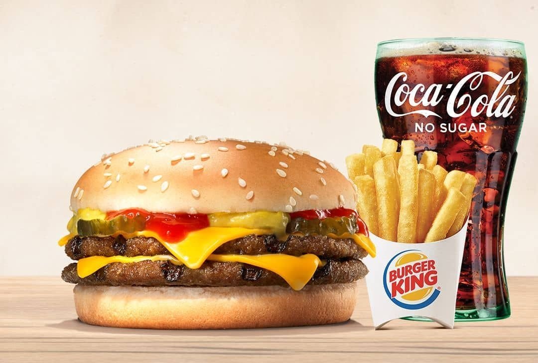 DOUBLE CHEESEBURGER SANDWICH, MEDIUM FRIES & MEDIUM SODA.