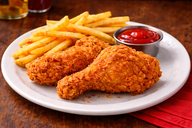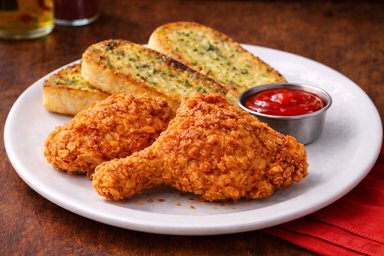 Two (2) pieces of crispy seasoned chicken, served with fries or garlic bread