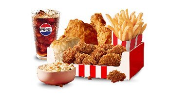 1 SMALL POPCORN CHICKEN, 2 PIECES OF CHICKEN, 1 SMALL FRIES, 1 BISCUIT, 1 MINI COLESLAW, 1 CUP DRINK.